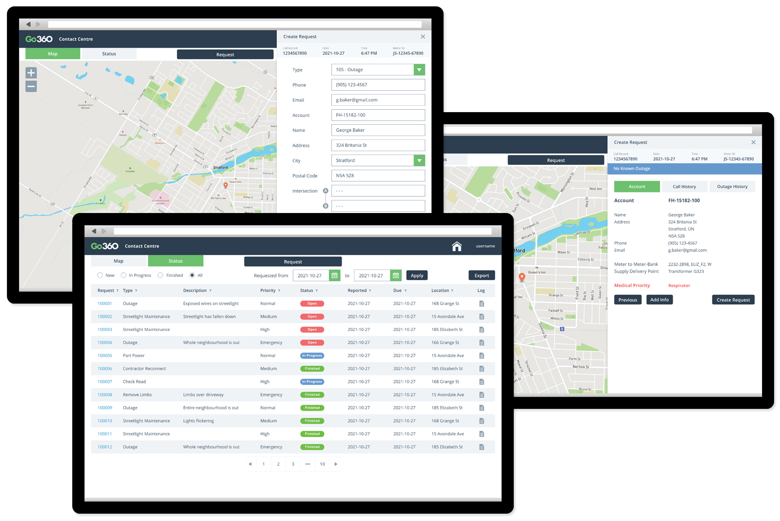 At the heart of the Contact Centre is Go360™ Customer Care. Call takers can quickly identify customers, view account information, along with complete account history on screen. It provides representatives with a real-time view of on-going incidents, disruptions, or service outages within the area, useful information that can be communicated back to the customer.